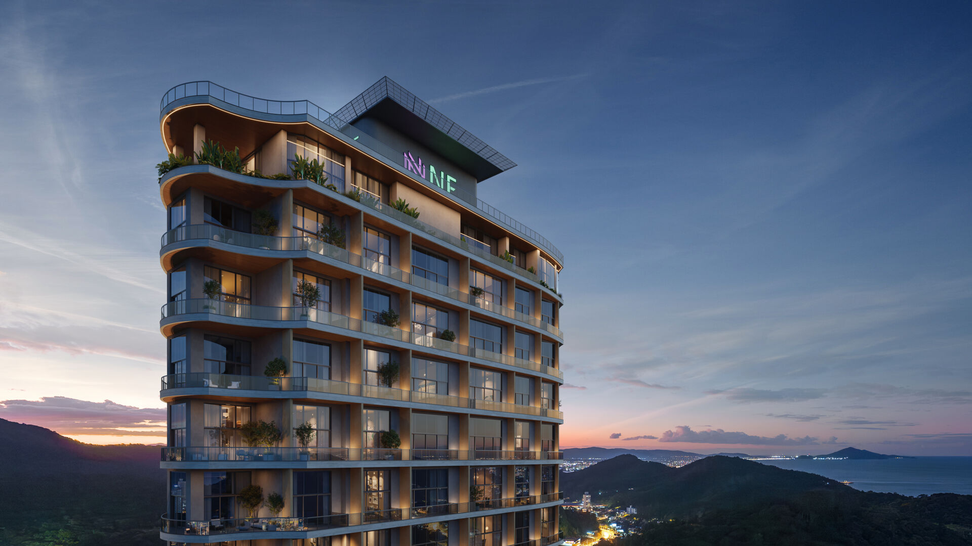 Com opções de pé-direito duplo e vista deslumbrante, o projeto oferece três pavimentos de lazer, incluindo piscina ao ar livre, wellness center com piscina aquecida, sauna e uma academia no rooftop com vista panorâmica.